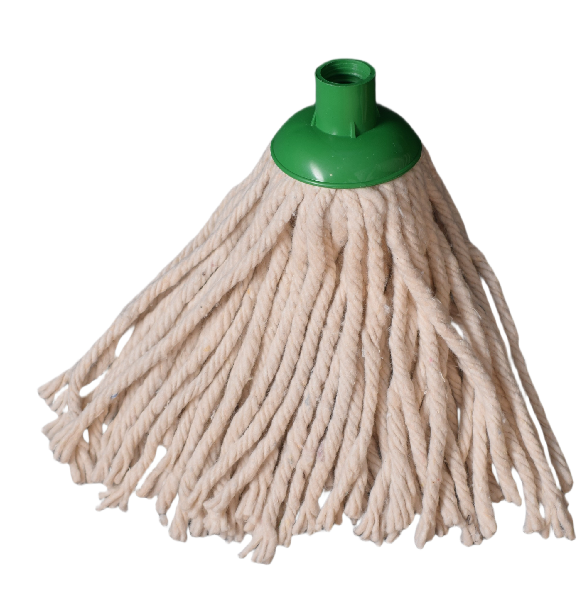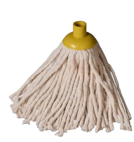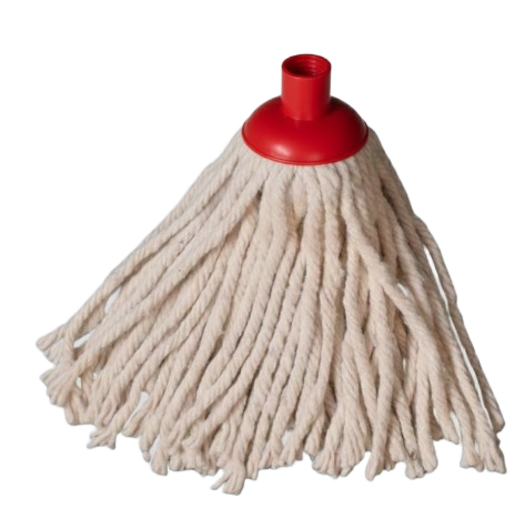 A durable, high-absorbency cotton mop head designed for everyday cleaning. The loop-end construction reduces fraying, increases coverage, and extends product life, while the stitched headband ensures secure attachment to most standard mop handles. Color-coded tabs help support hygiene protocols and easy area identification. Ideal for commercial, industrial, and janitorial use.
