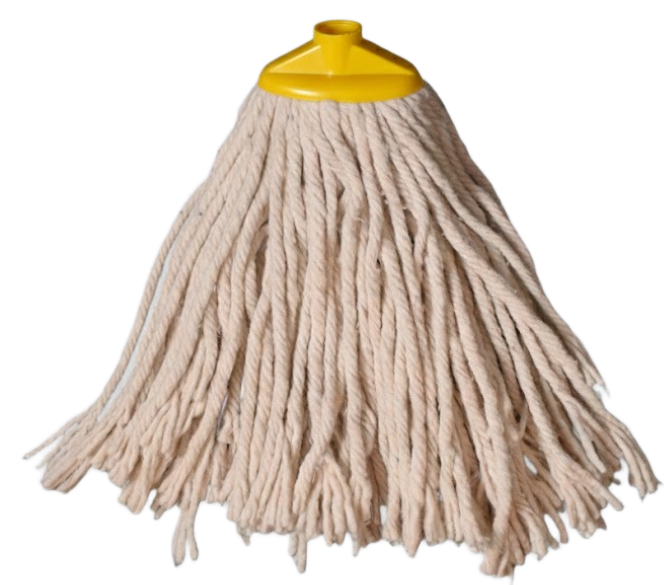 A durable, high-absorbency cotton mop head designed for everyday cleaning. The loop-end construction reduces fraying, increases coverage, and extends product life, while the stitched headband ensures secure attachment to most standard mop handles. Color-coded tabs help support hygiene protocols and easy area identification. Ideal for commercial, industrial, and janitorial use.